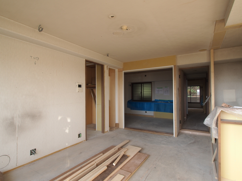 リビングの施工中