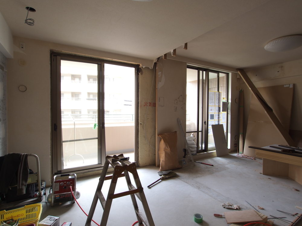リビングの施工中