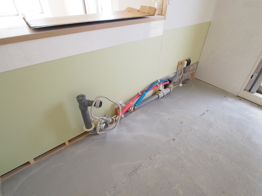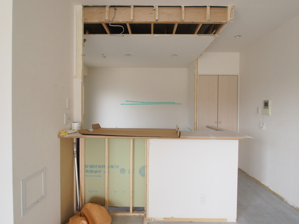 キッチンスペースの施工中