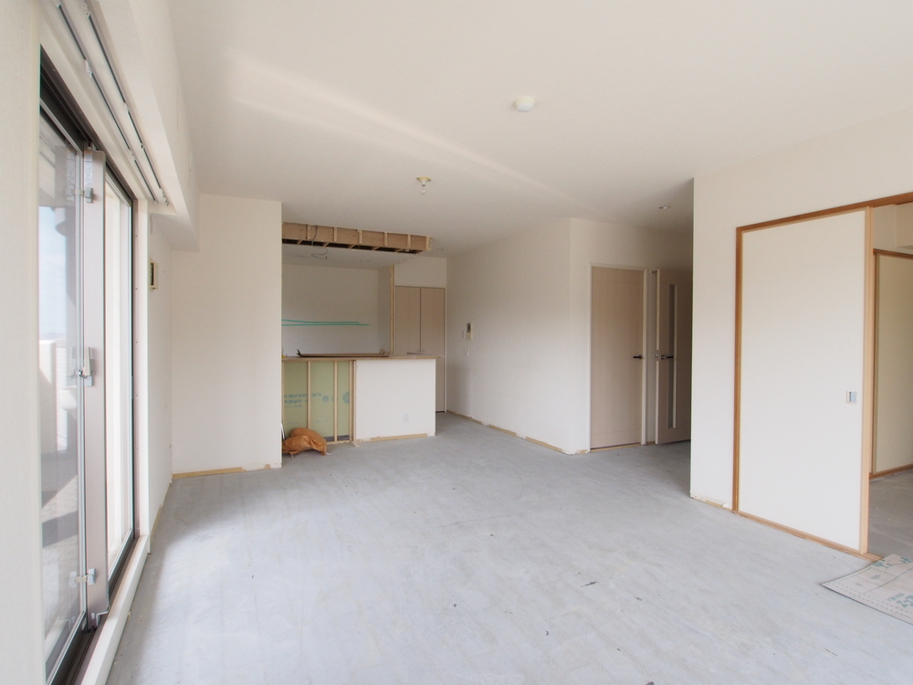 リビングの施工中