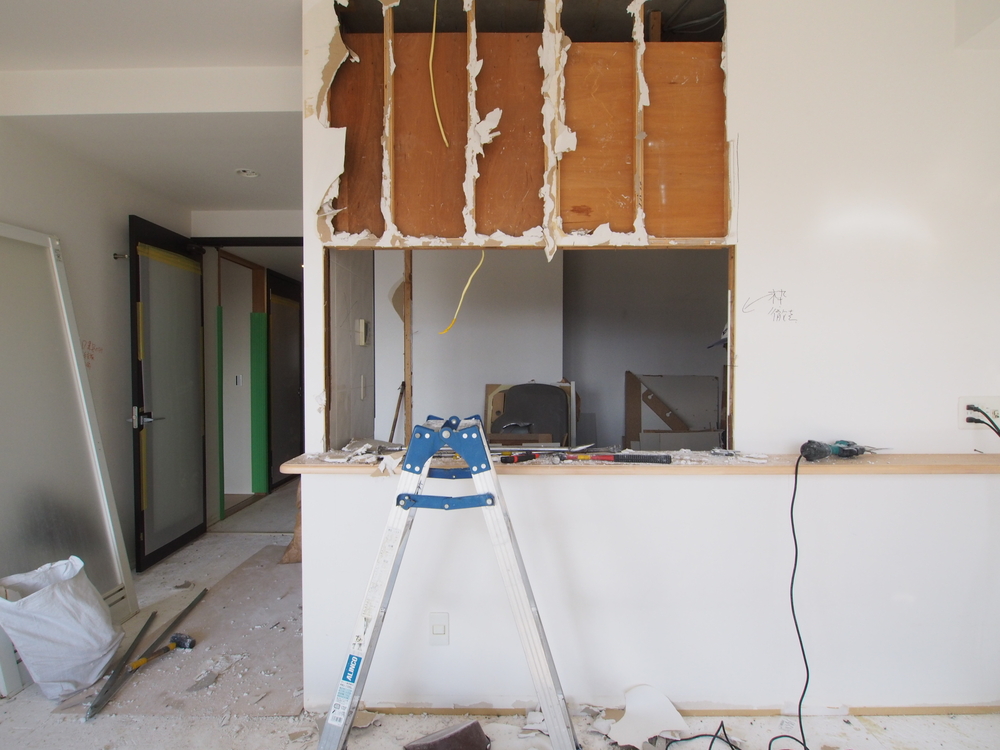 キッチン前の垂れ壁も解体中