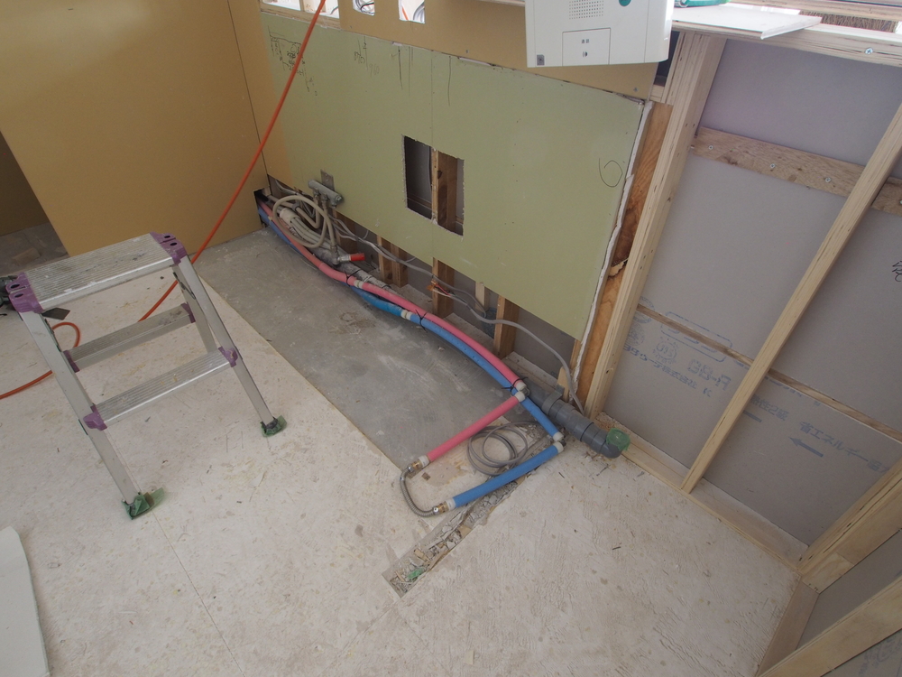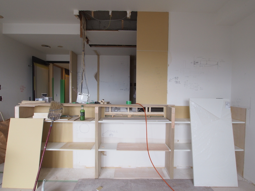 キッチンスペースの施工中