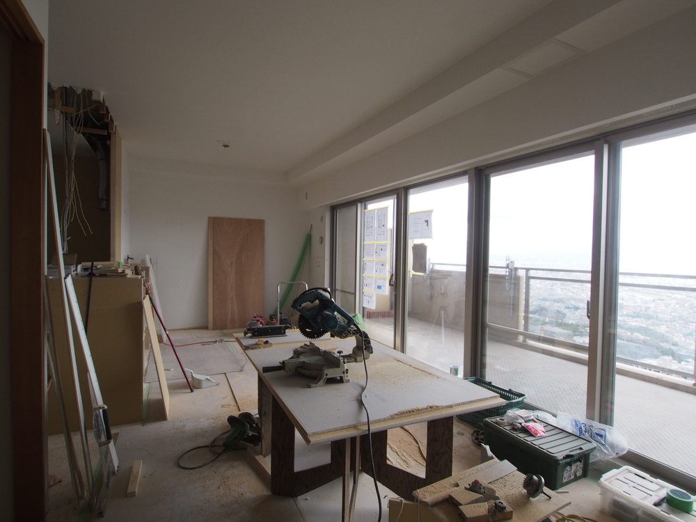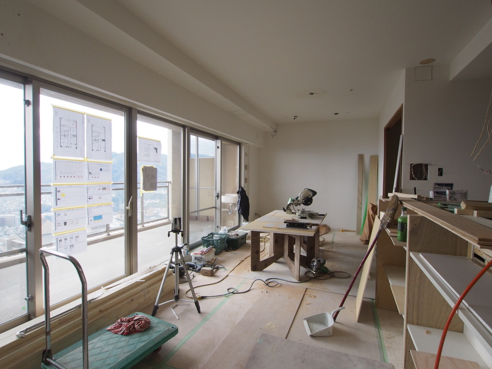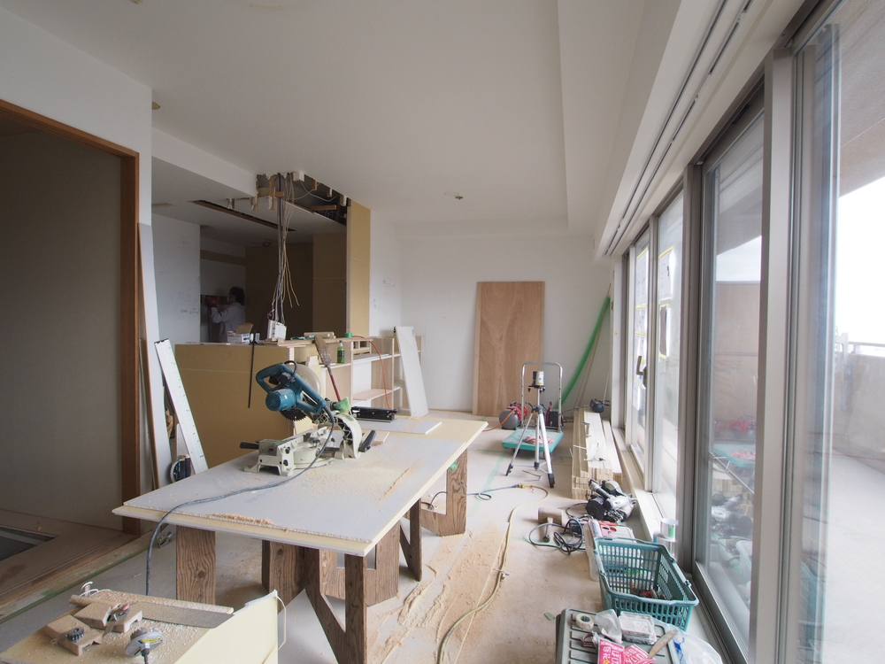 リビングの施工中