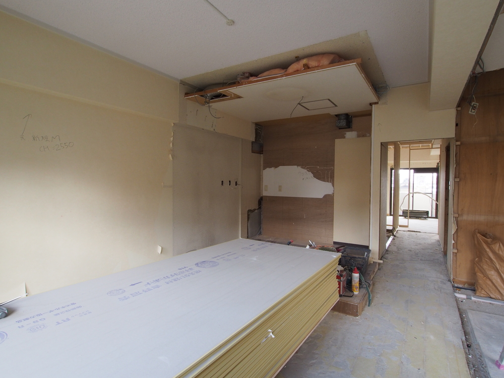 リビングの施工中