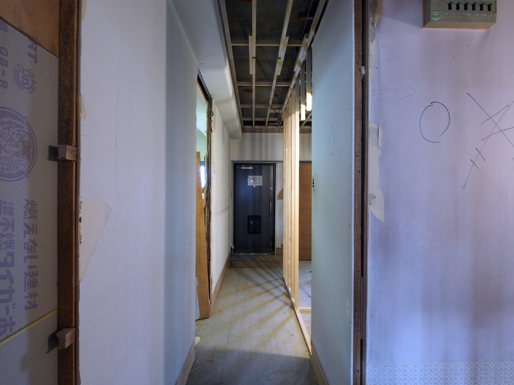 壁を解体し、新たな壁を造作しています。