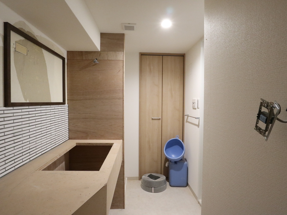 コンクリート打ち放しの天井と無垢フローリングのリビング