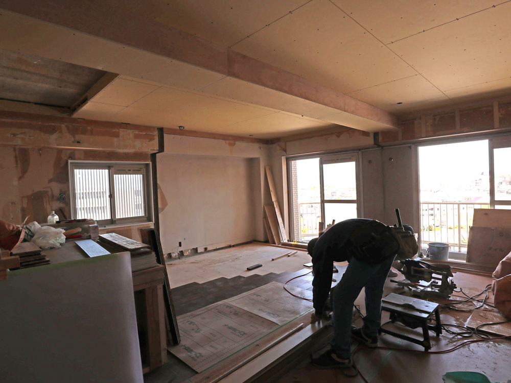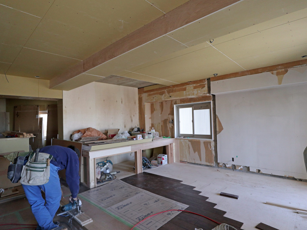 リビングの施工中