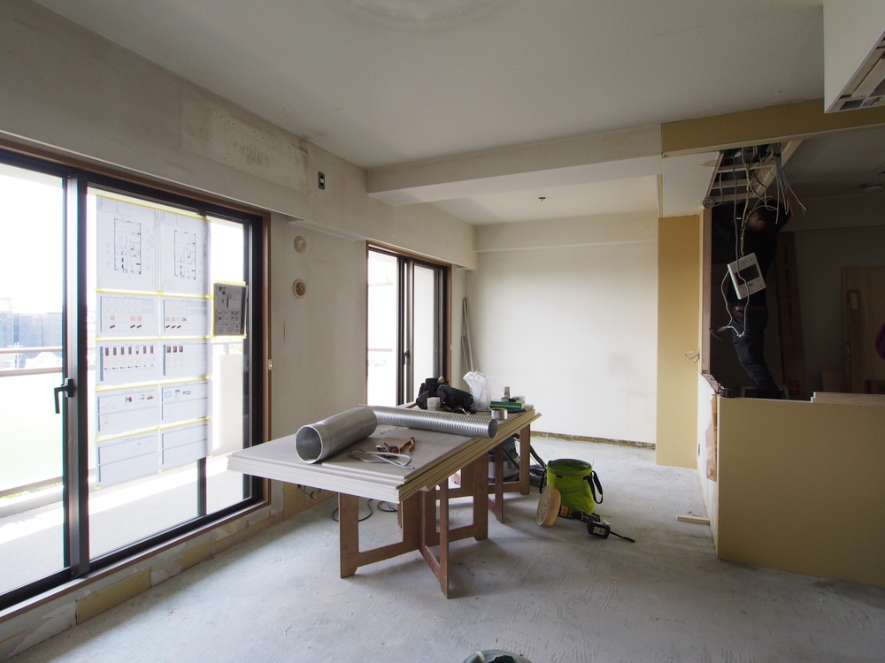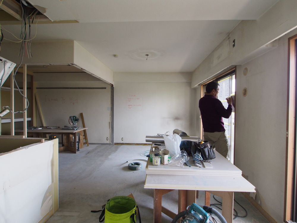 リビングの施工中