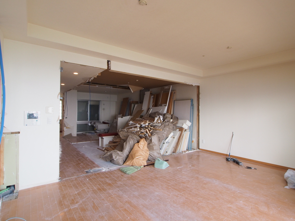 リビングの施工中