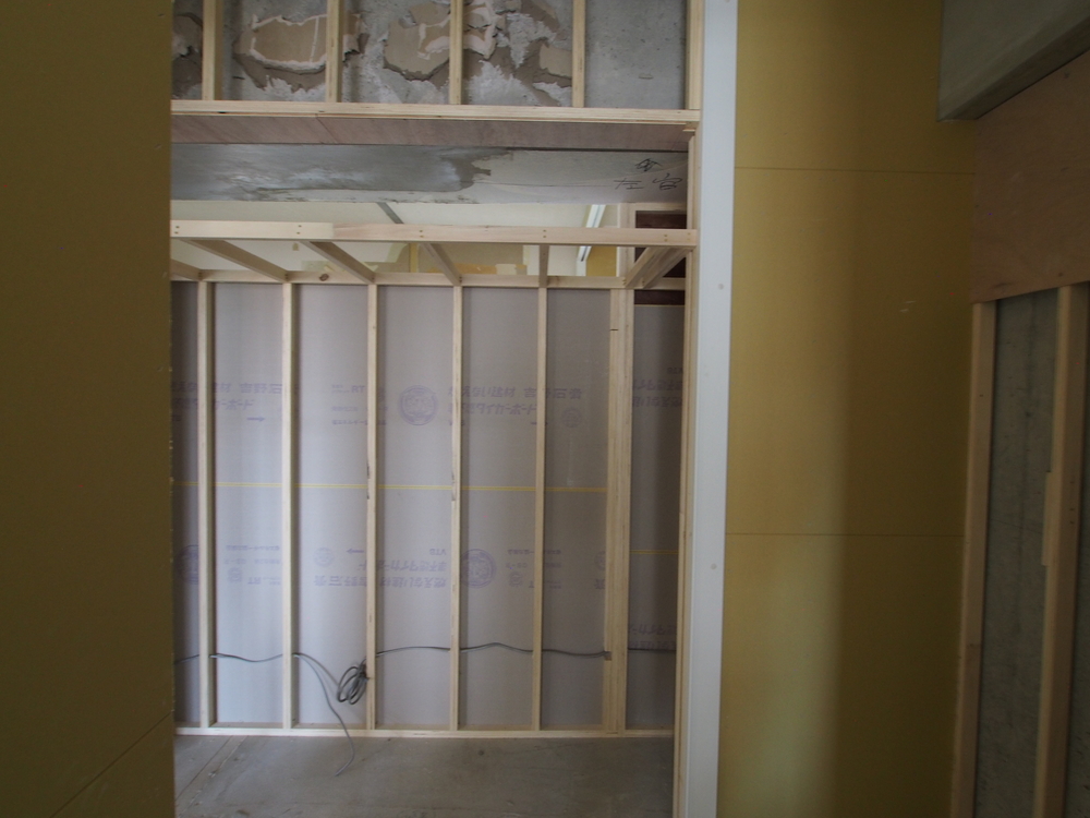 ウォークインクロゼットの壁を立てています。