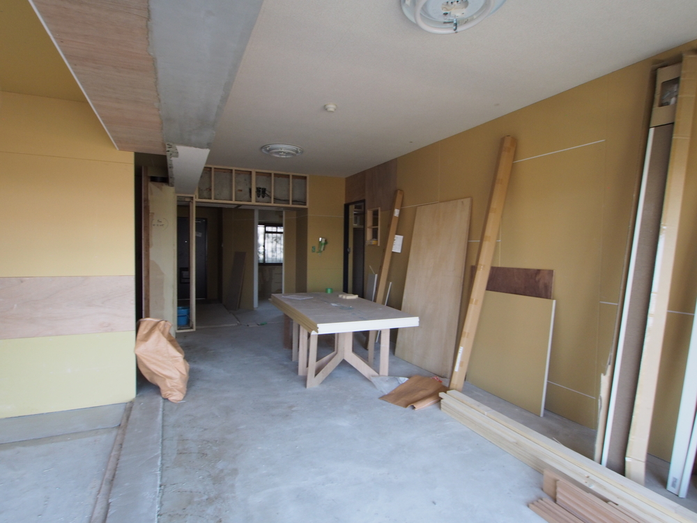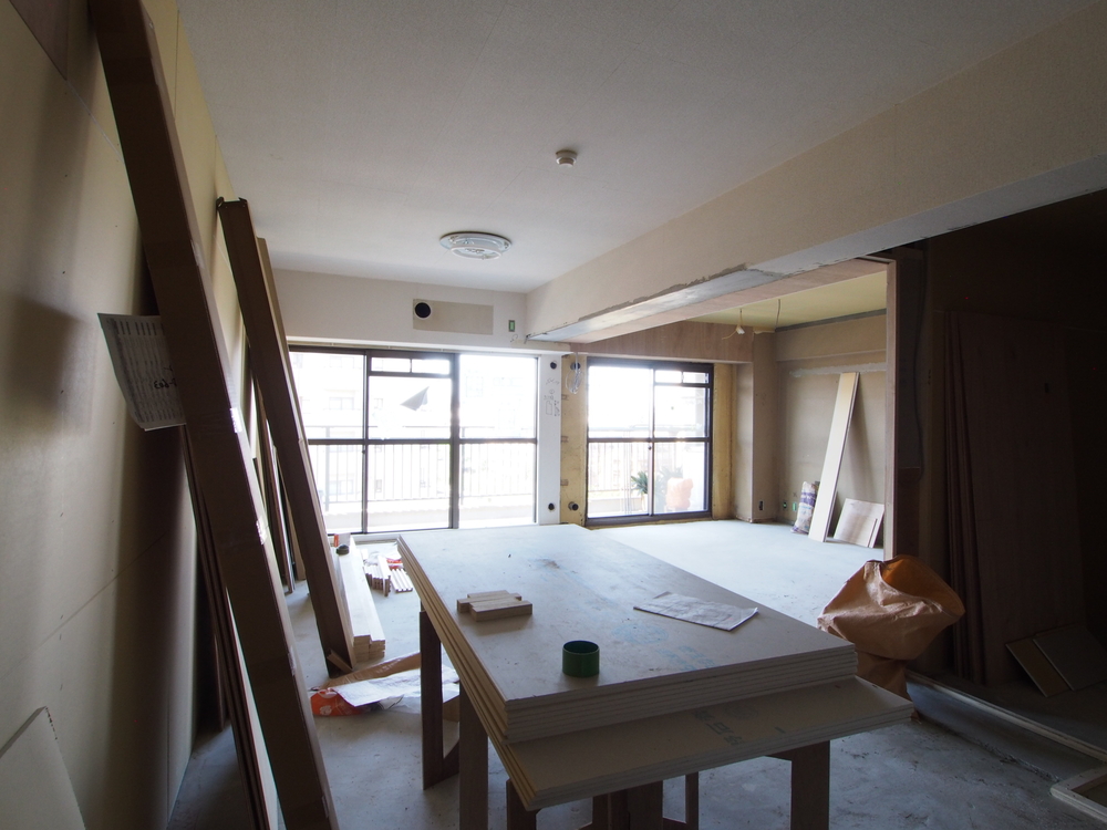 リビングの施工中