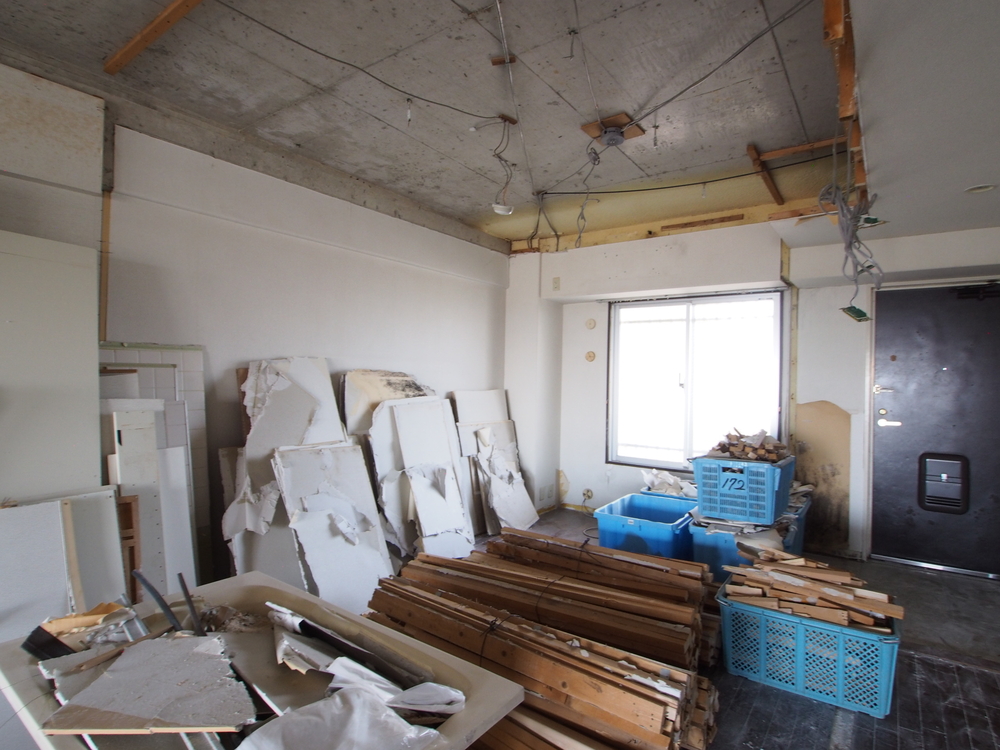 壁・天井など解体しています。
