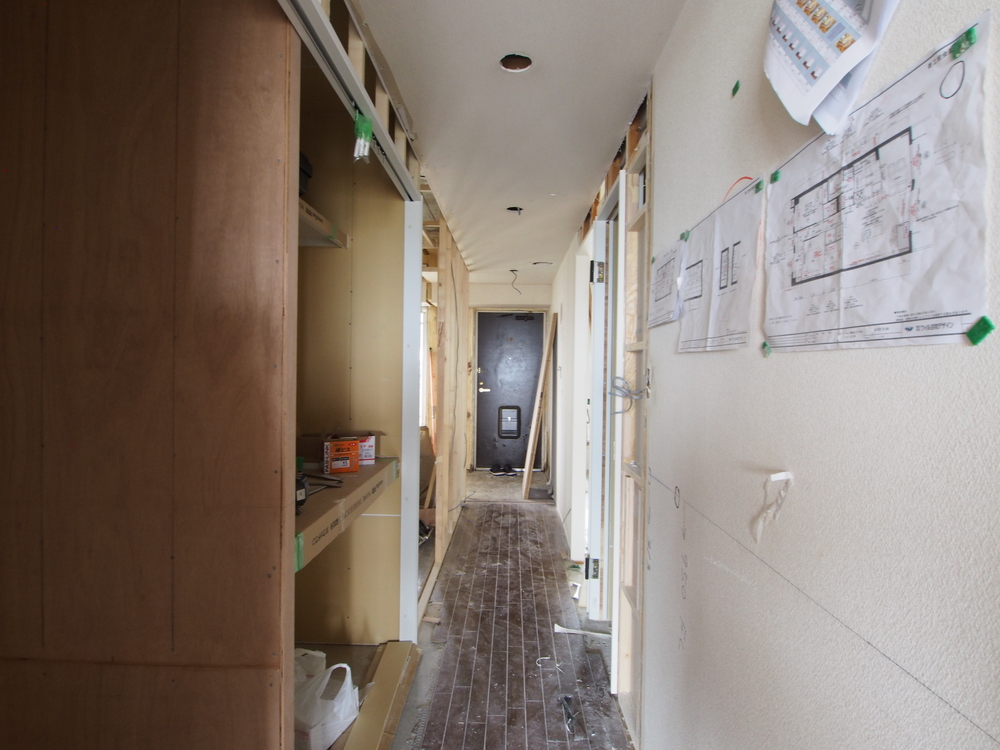 廊下の施工中