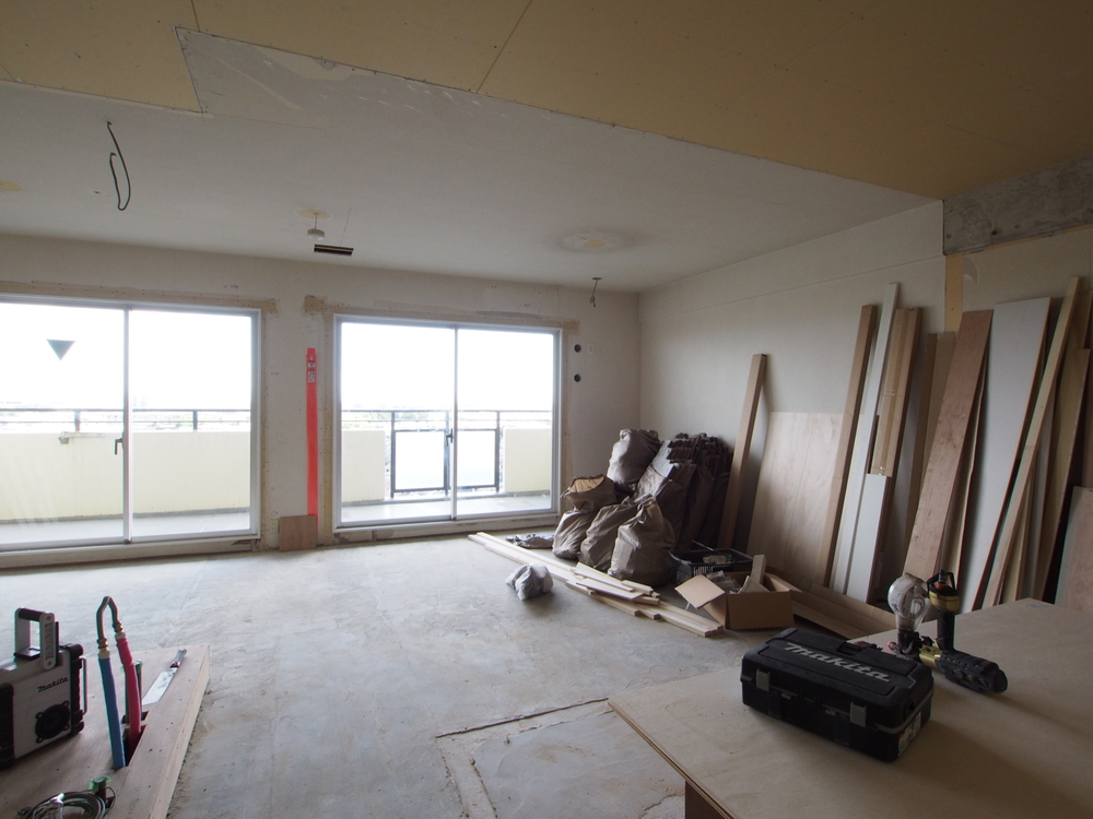 リビングの施工中