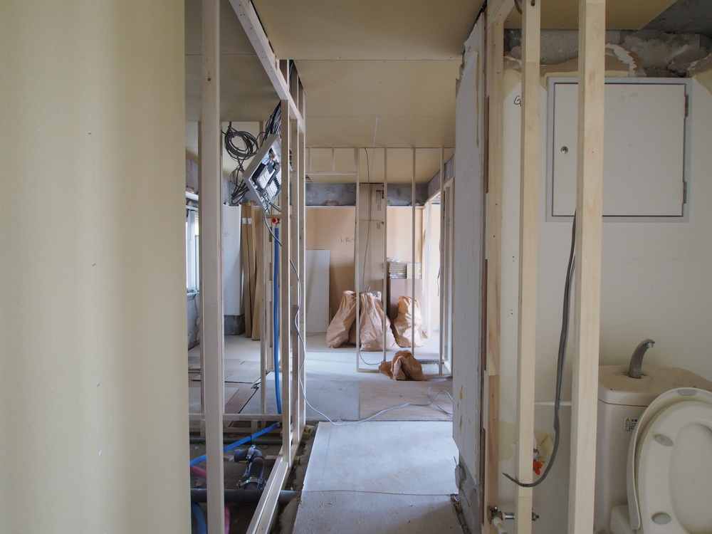 廊下の施工中