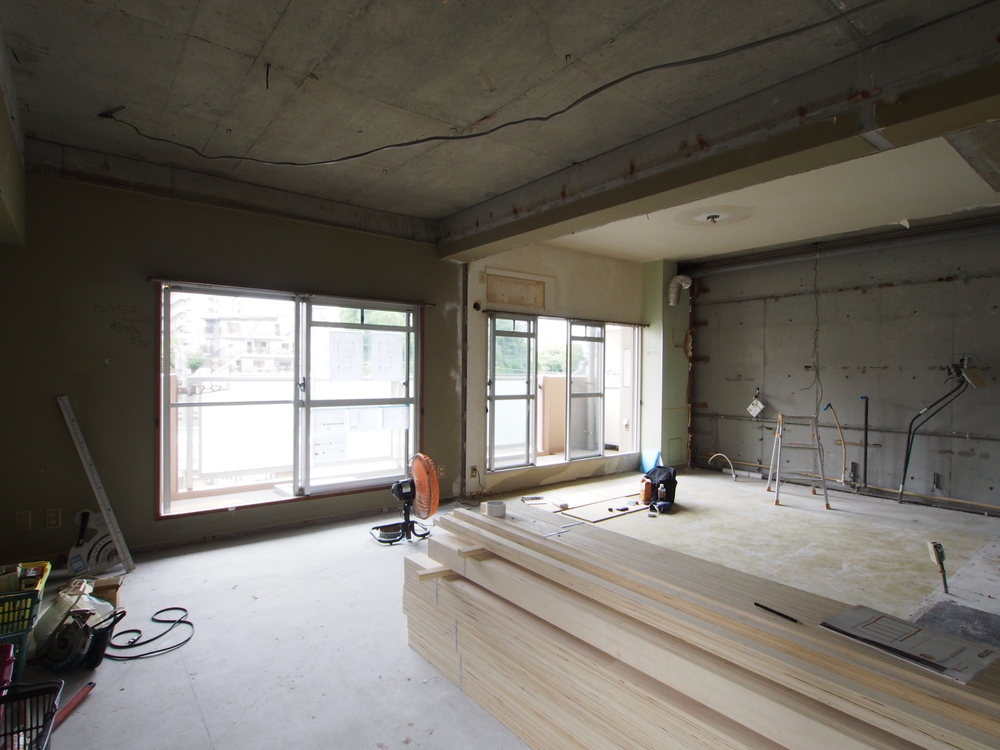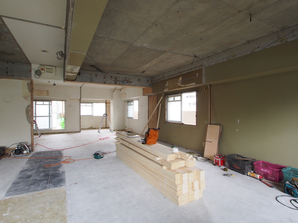 リビングの施工中