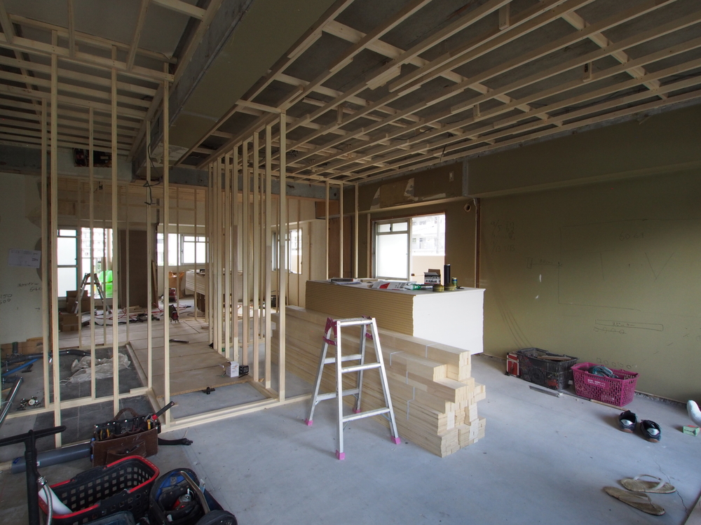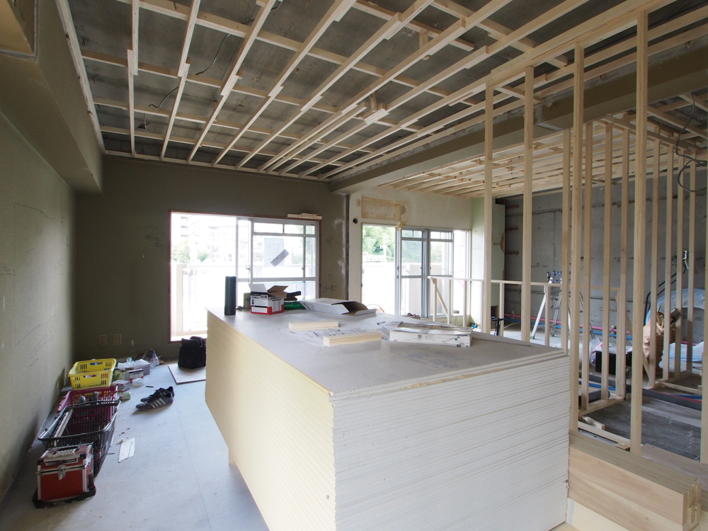 リビングの施工中