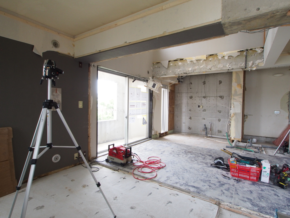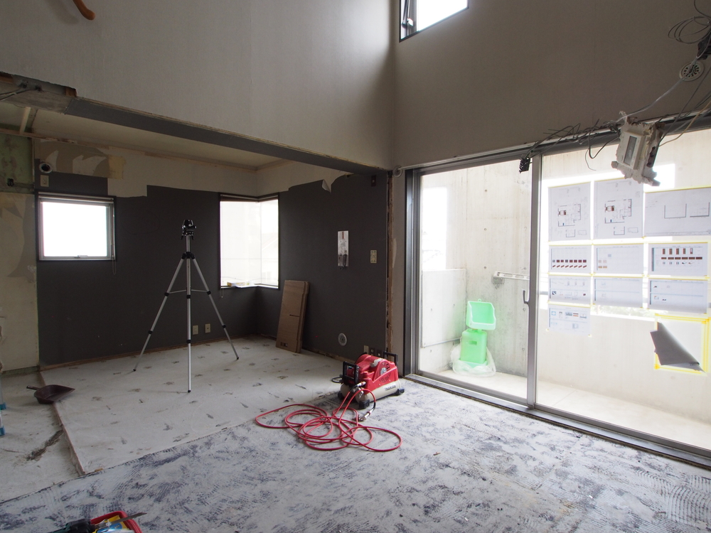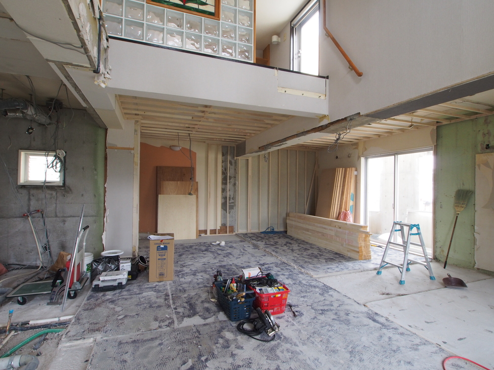 リビングの施工中