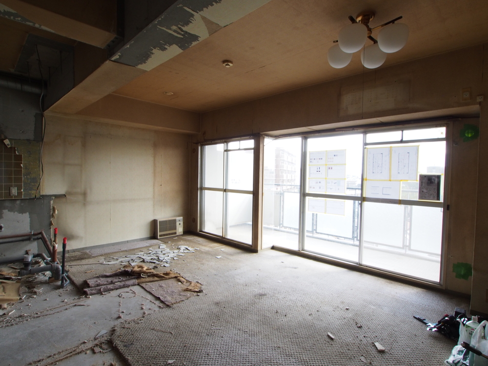 リビングの施工中