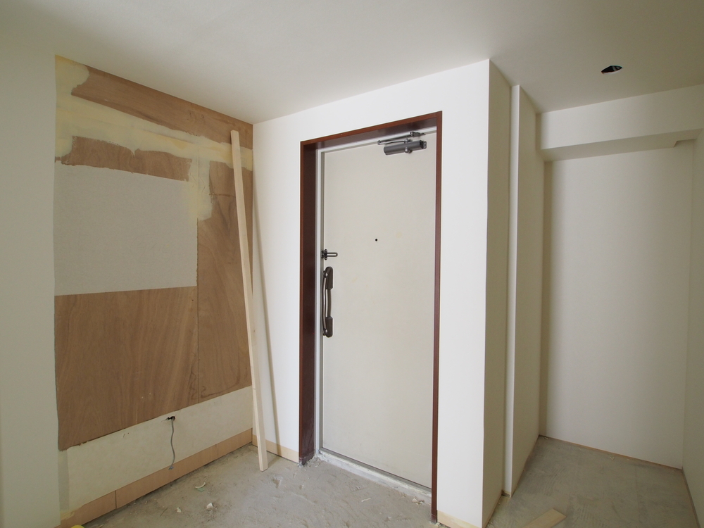玄関の施工中