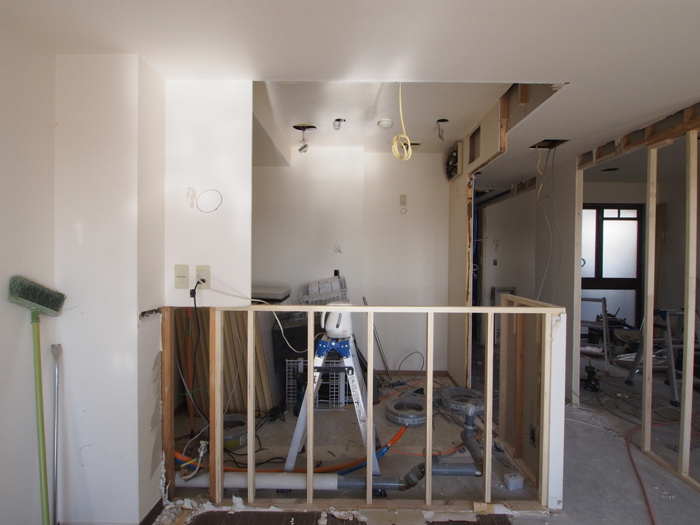 キッチンスペースの施工中