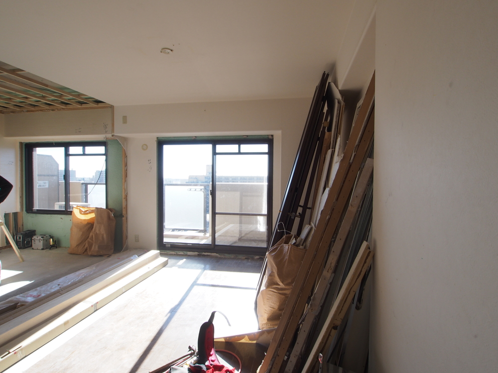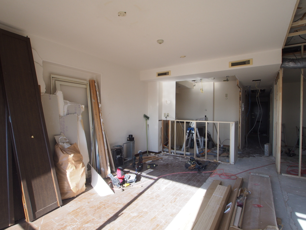 リビングの施工中