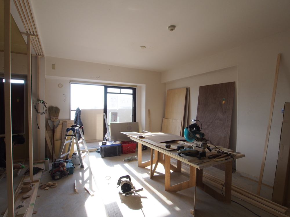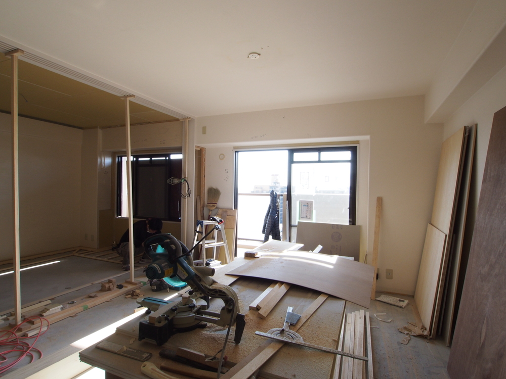 リビングの施工中