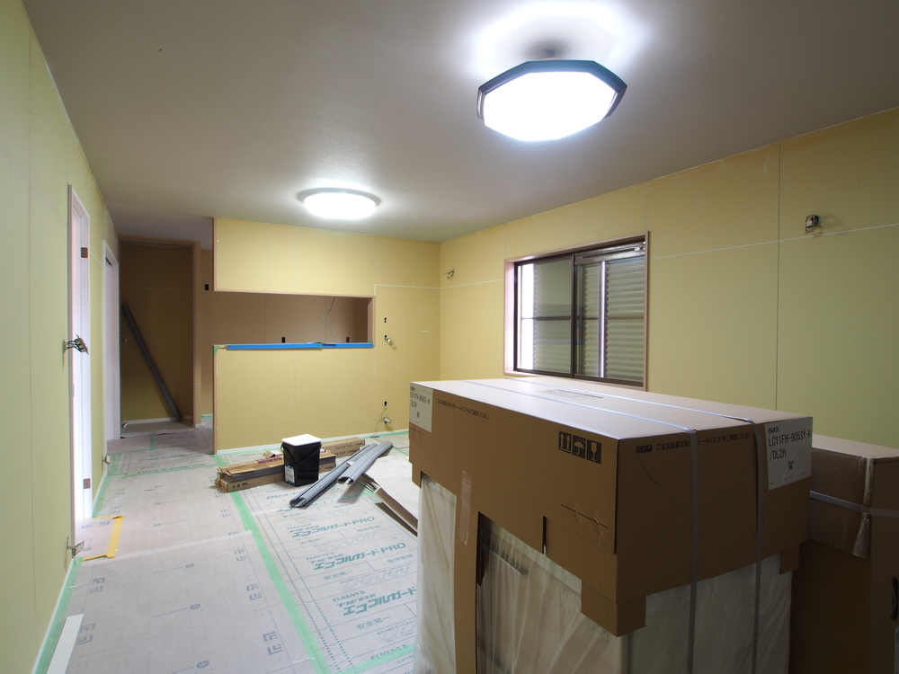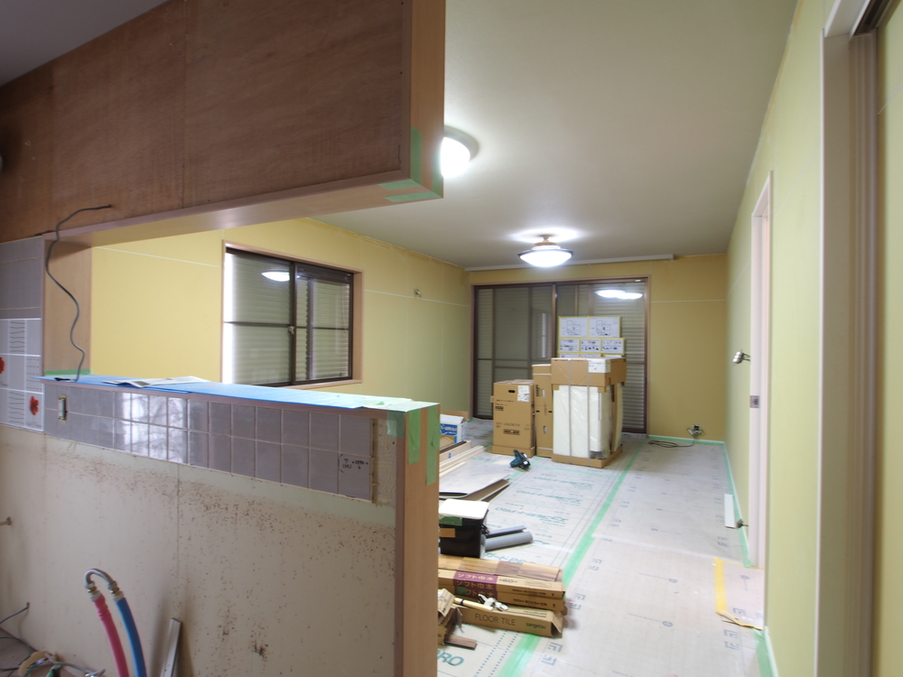リビングの施工中