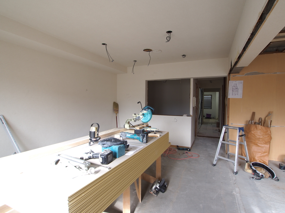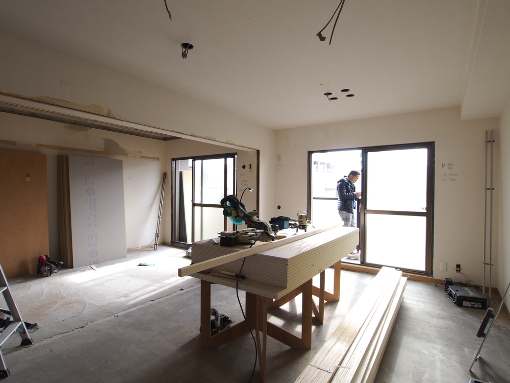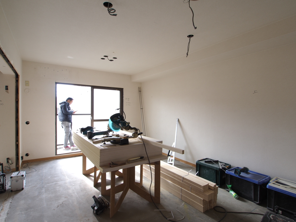 リビングの施工中