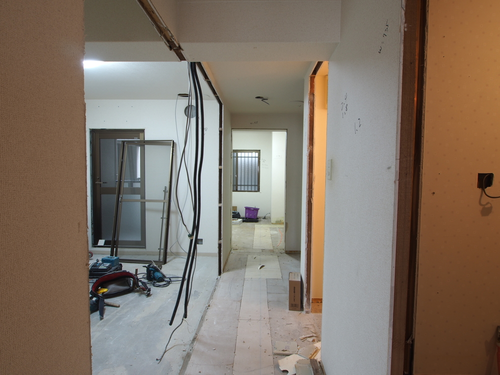 廊下の施工中