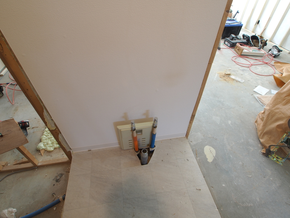 洗面室の施工中