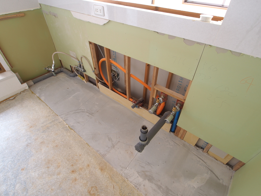 キッチンスペースの施工中
