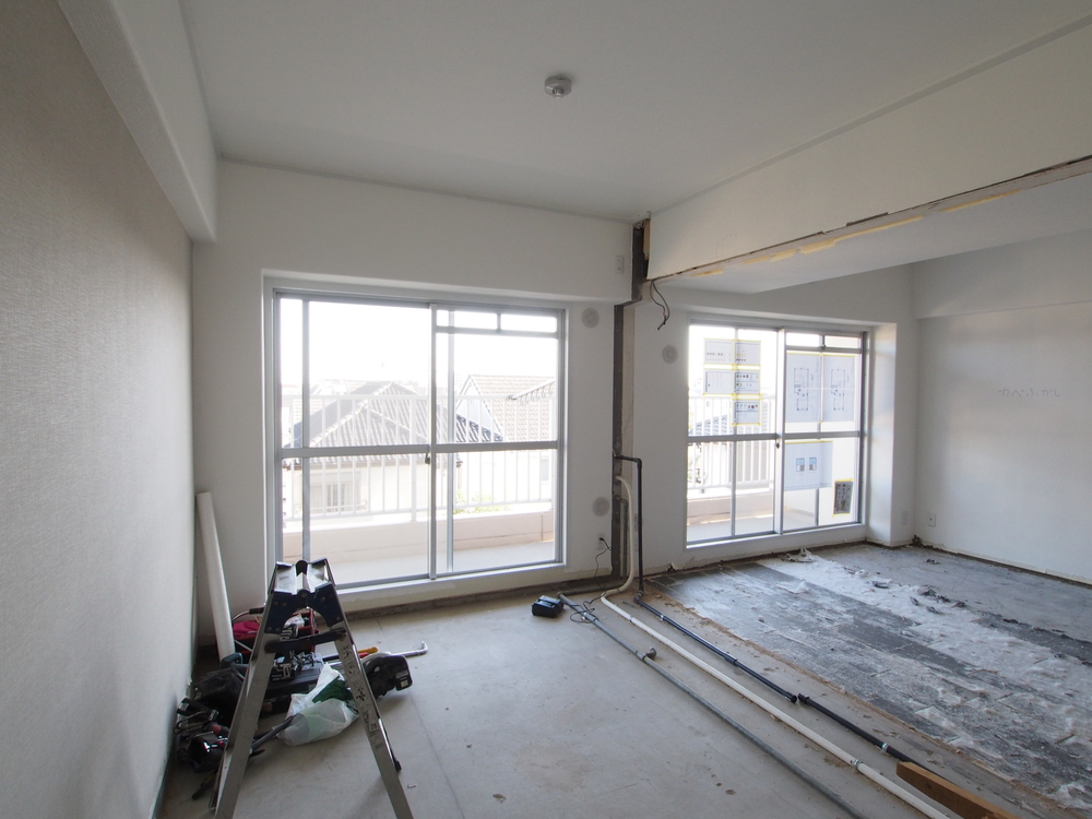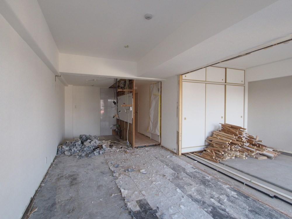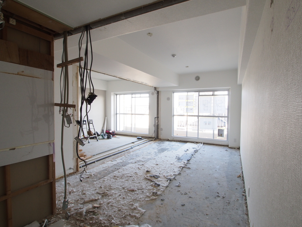 リビングの施工中