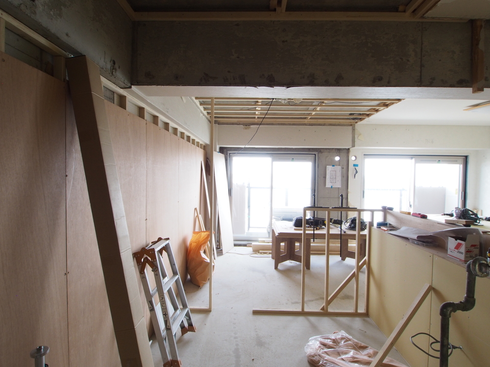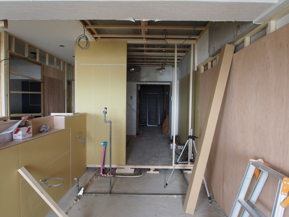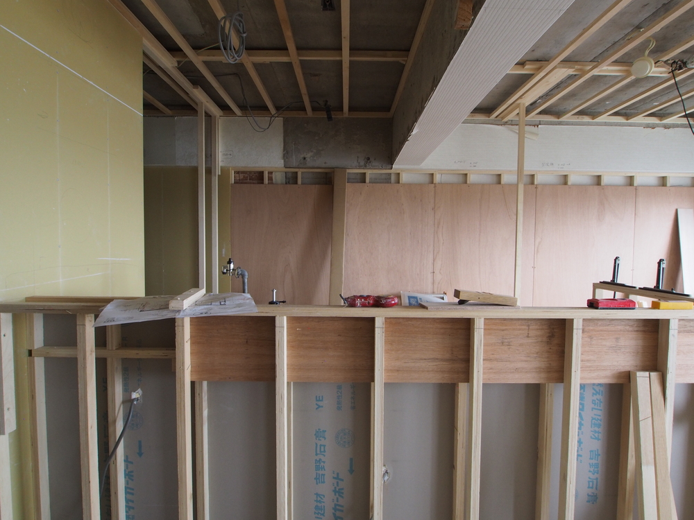 キッチンスペースの施工中
