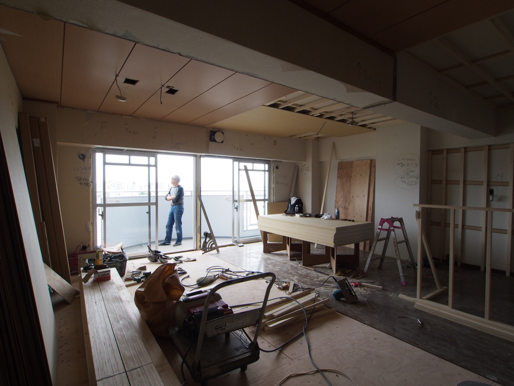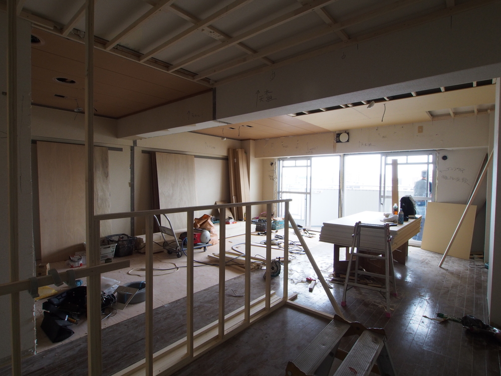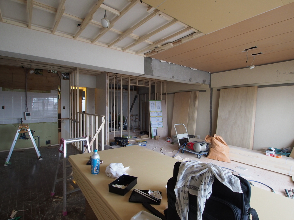 リビングの施工中