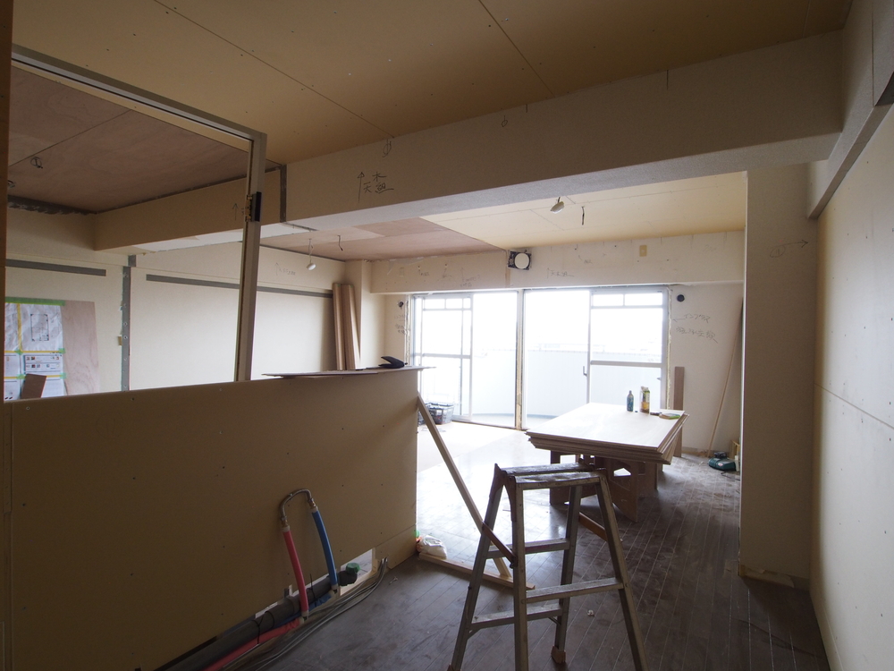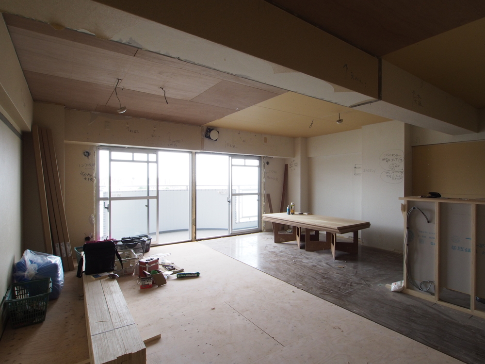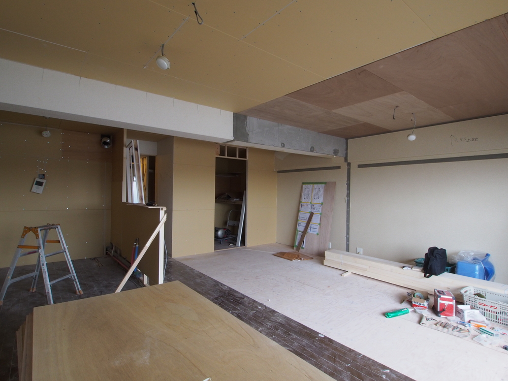 リビングの施工中