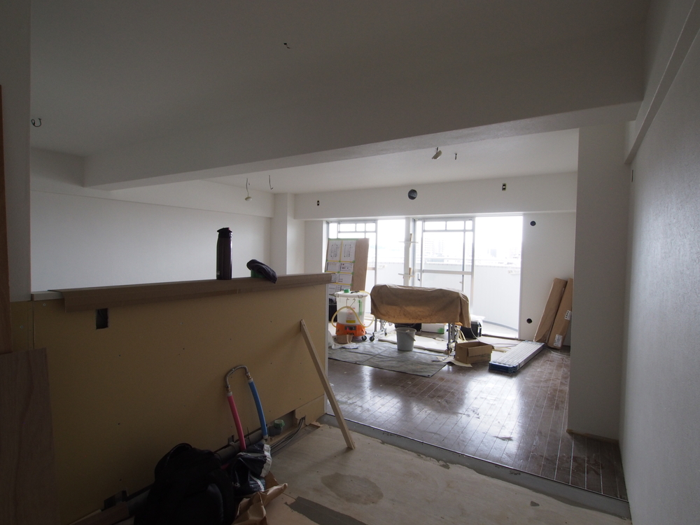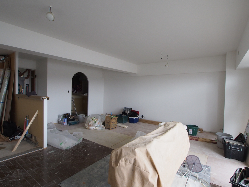 リビングの施工中
