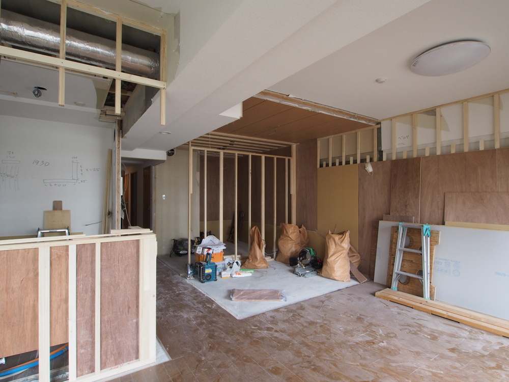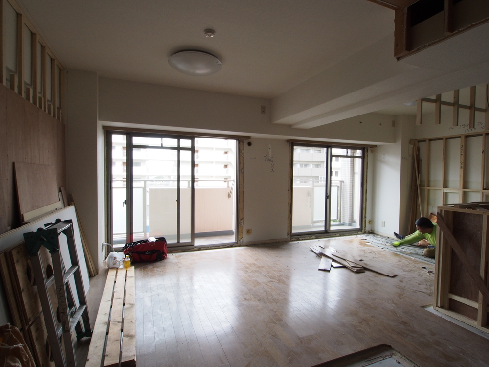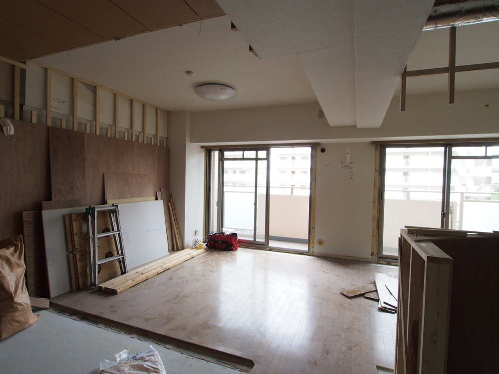 リビングの施工中
