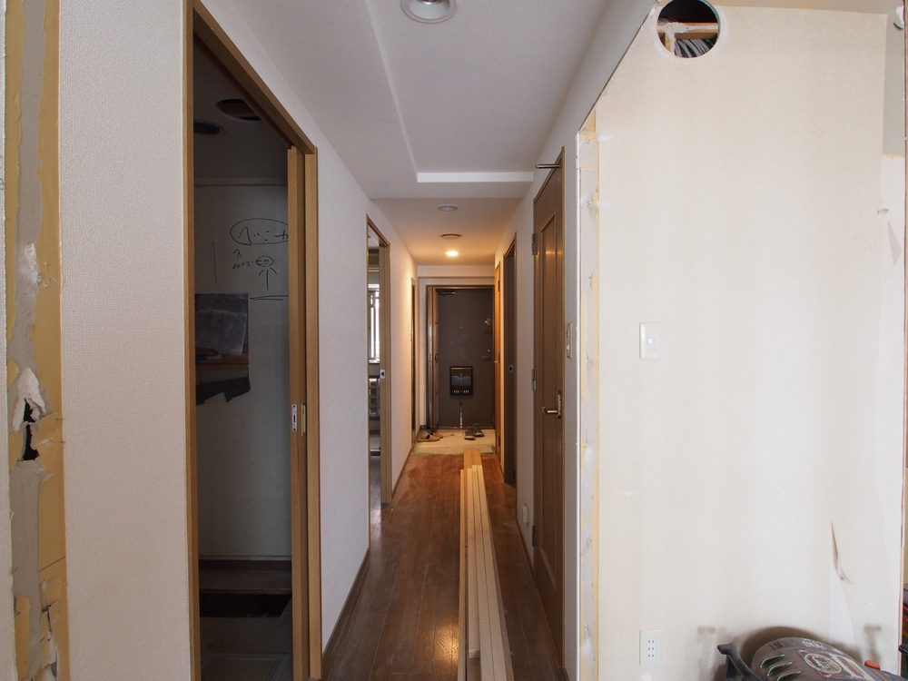 廊下の施工中