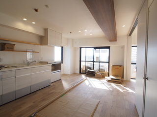 築26年マンションリフォーム。 みんなで集まれるよう、リビングを広く。
