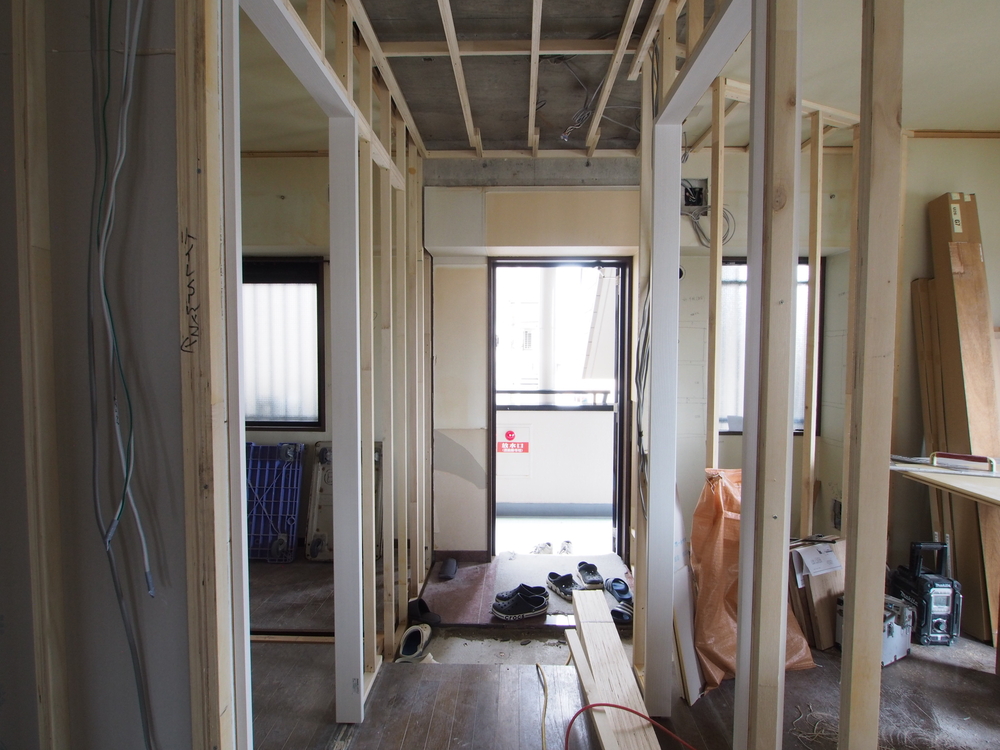 廊下の施工中