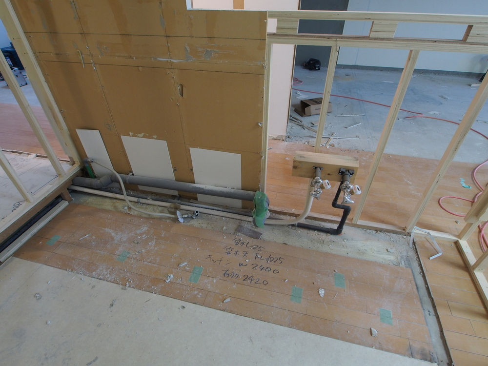 キッチンスペースの施工中
