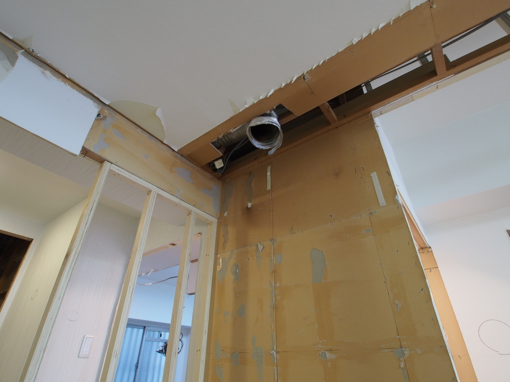 システムキッチン・壁を解体。造作スタート。