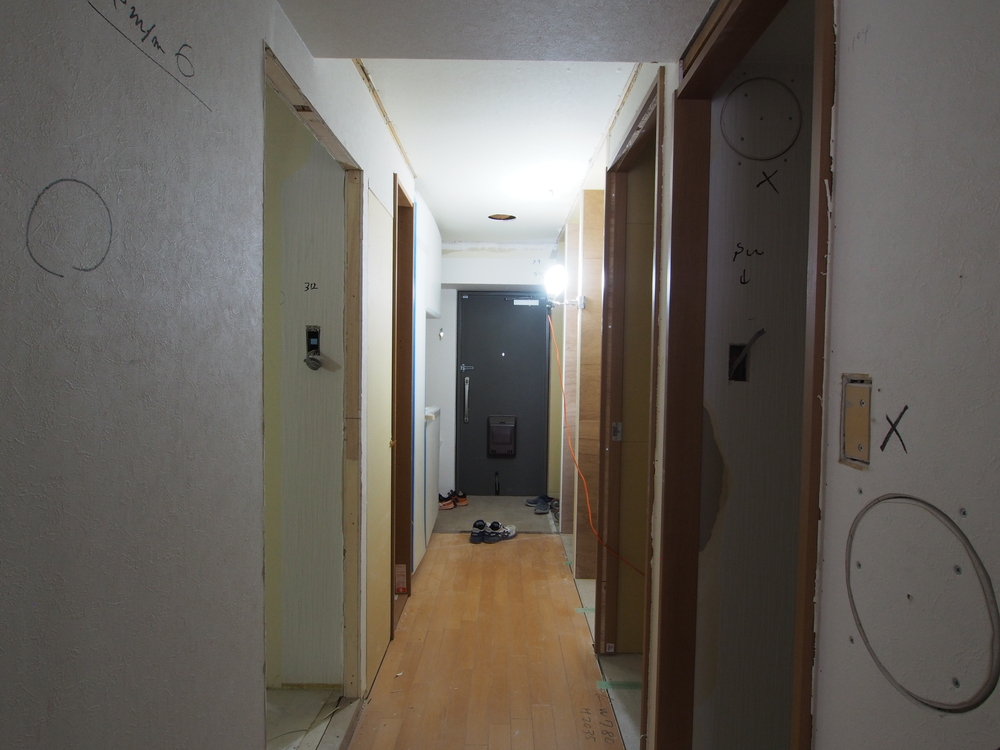 廊下の施工中