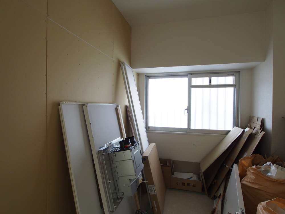 壁面にボードを施工。