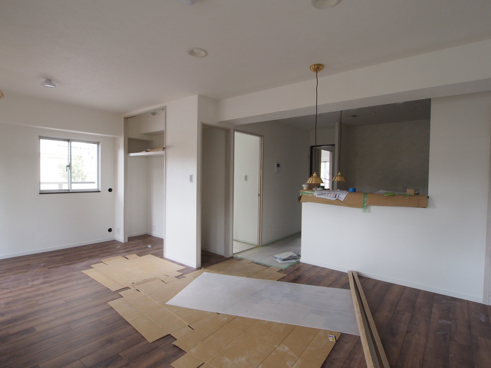リビングの施工中