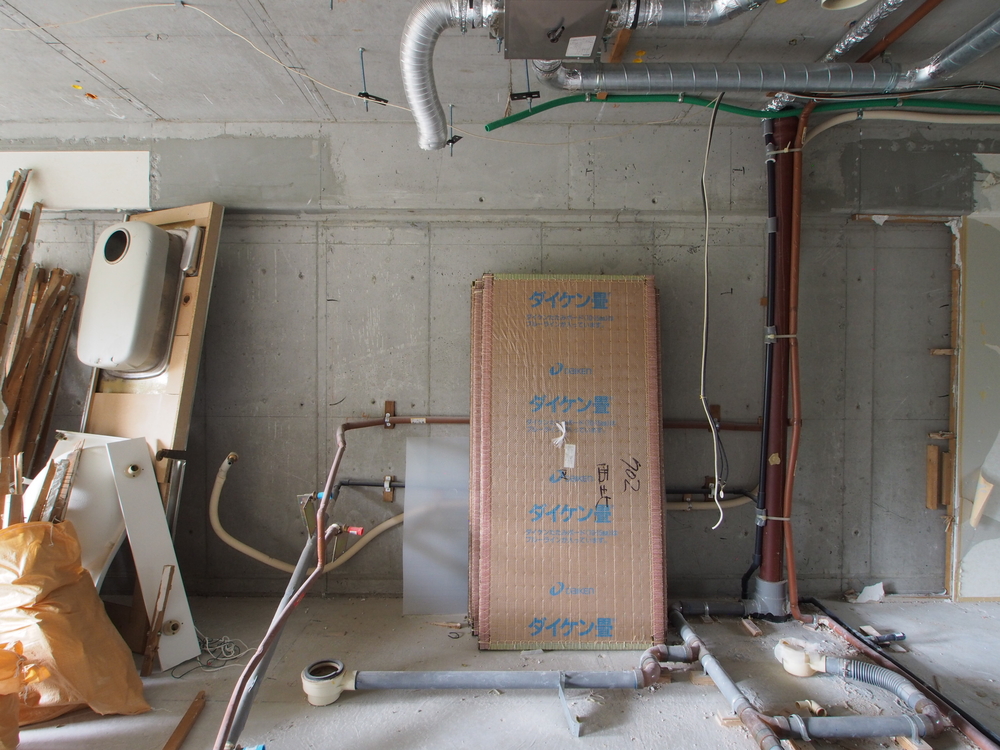キッチンスペースの施工中