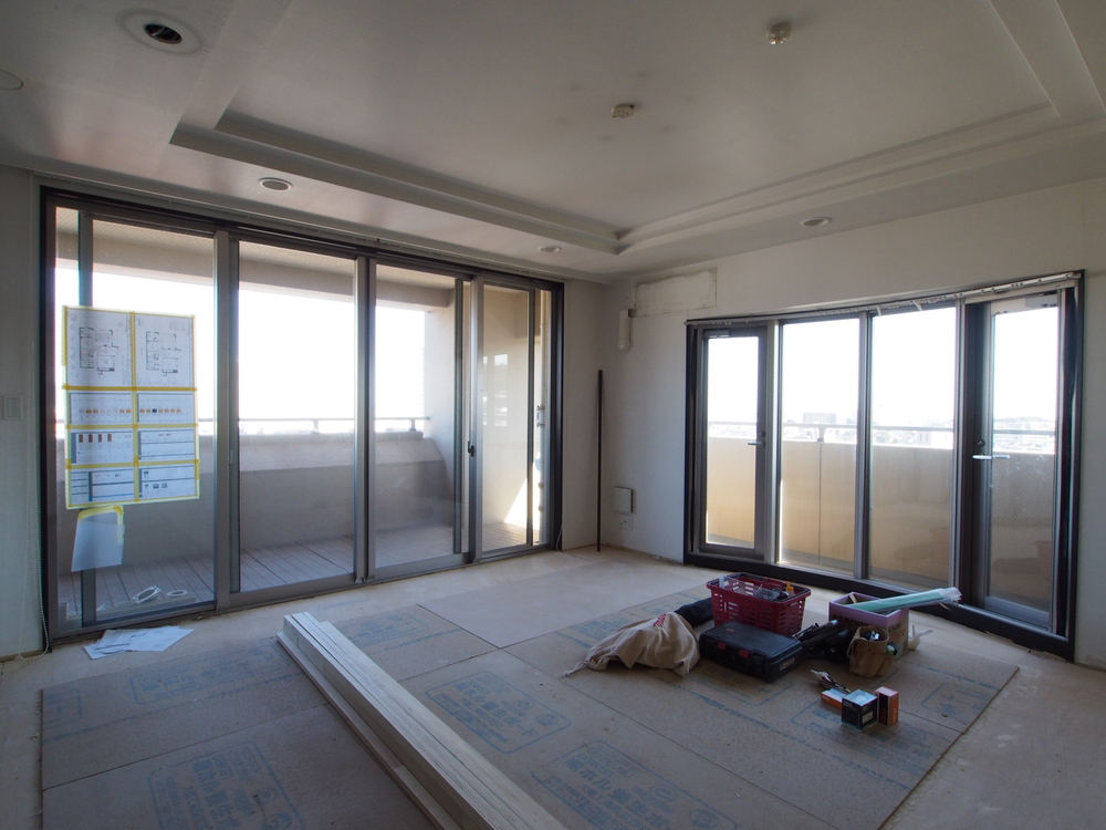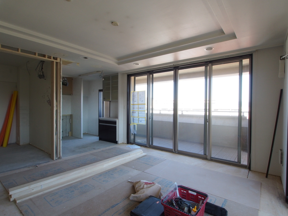 リビングの施工中