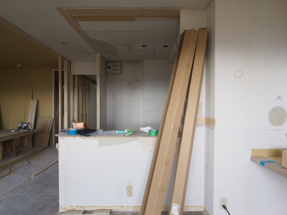 キッチンスペースの施工中