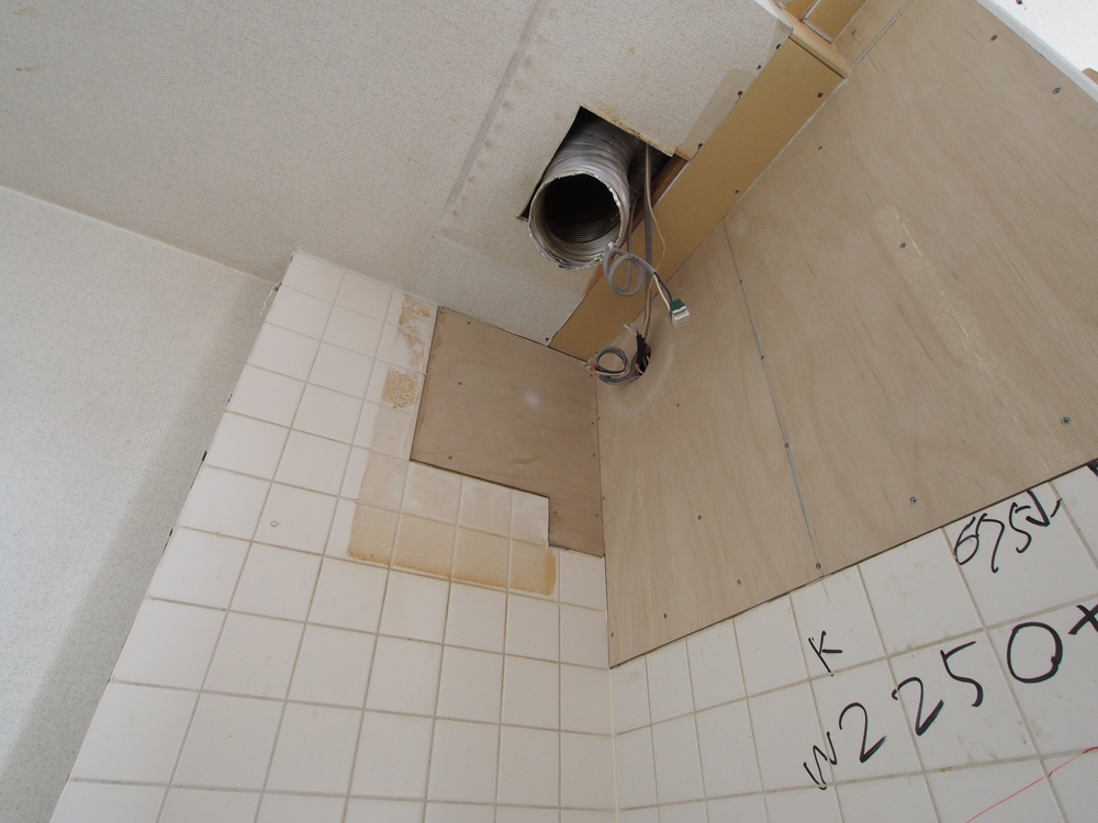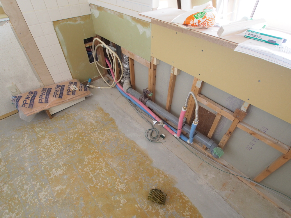 キッチンの床を剥がし、壁を一部補修しました。